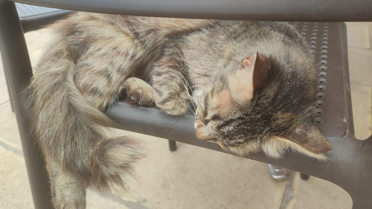 Ich bin Zina (2 Bilder oben) und in einem Karton mit zwei Babys bei Audrey auf dem Zentralmarkt angekommen... Leider sind die Babys gestorben und ich bin bei Audrey geblieben. Ich wurde dank des Sterilisationsprogramms für Strassenkatzen am 1. Juli 2021 sterilisiert. Ich geniesse mein stressfreieres Laben auf der Terrasse bei Audreys..