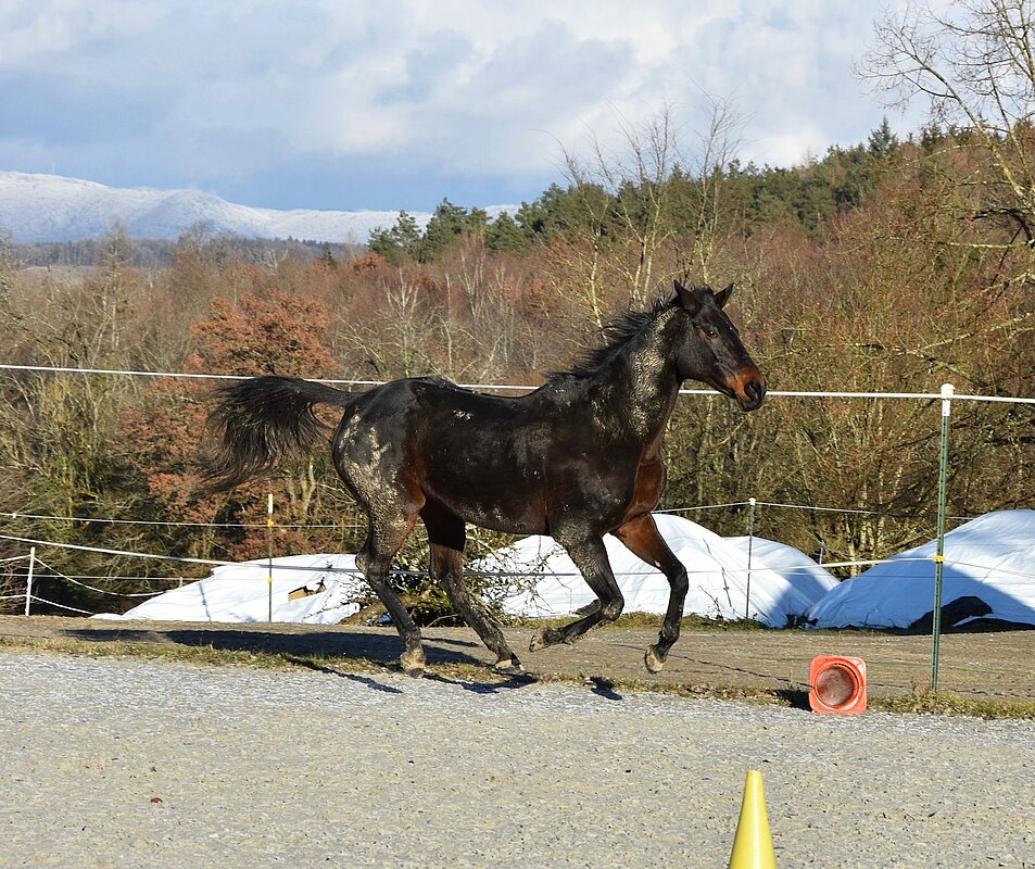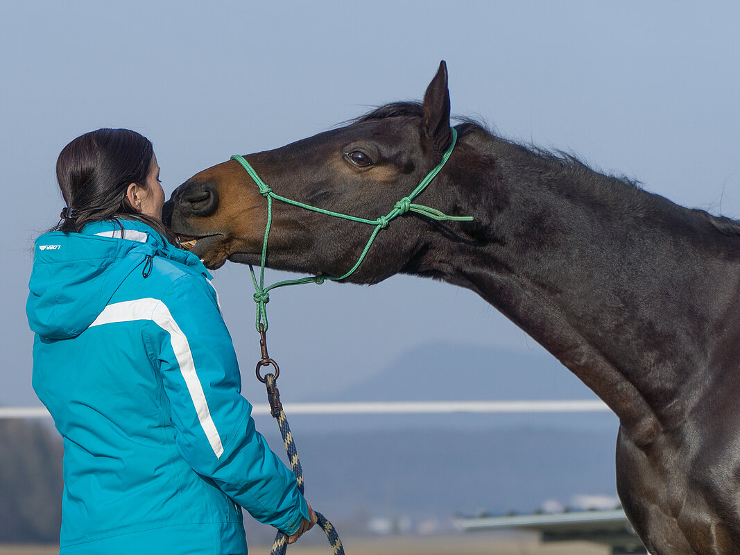 An den Patenschaftstreffen des Vereins «Zweites Leben für Sportpferde» kommt Zaubi voll auf die Rechnung. «Wir gestalten diese gemeinsame Zeit ganz im Einklang mit den Pferden. Ob ein entspannter Postenlauf, ausgiebiges Putzen oder ruhige Momente der Meditation, jede Begegnung richtet sich nach den Bedürfnissen der Tiere. So entsteht Raum für echte Verbindung, Achtsamkeit und Vertrauen. Im Mittelpunkt steht eine Begegnung auf Herzebene zwischen Menschen und Pferden.» sagt Natalie Friberg.